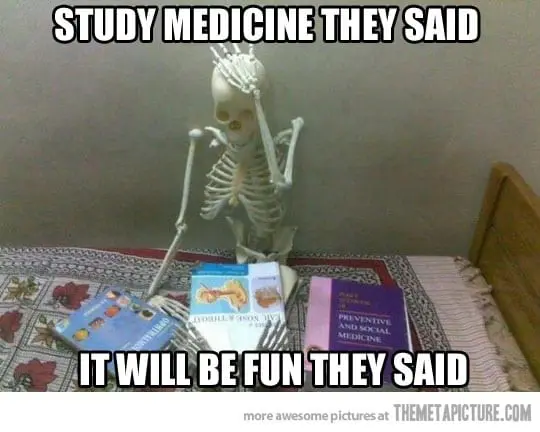 They say that Medical College is a job and you should treat it as such. Well, that’s all and good, except the job is much more intense than a 9 to 5. Before starting MBBS, I had heard that I might have to study 6 hours a day. I didn’t really believe it and I didn’t think I could ever do that. Well, I ended up studying harder than I ever thought I could.