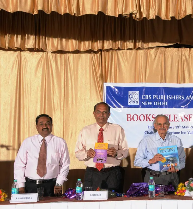 Dr. Rajgopal Shenoy at the release of his book, Manipal Manual of Surgery 3rd edition at Manipal by DR L N Rao ex-dean KMC Manipal. Dr Sripath Rao releasing the Instruments