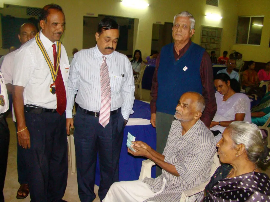 Dr. Rajgopal Shenoy donates a cheque for an artificial limb to a patient