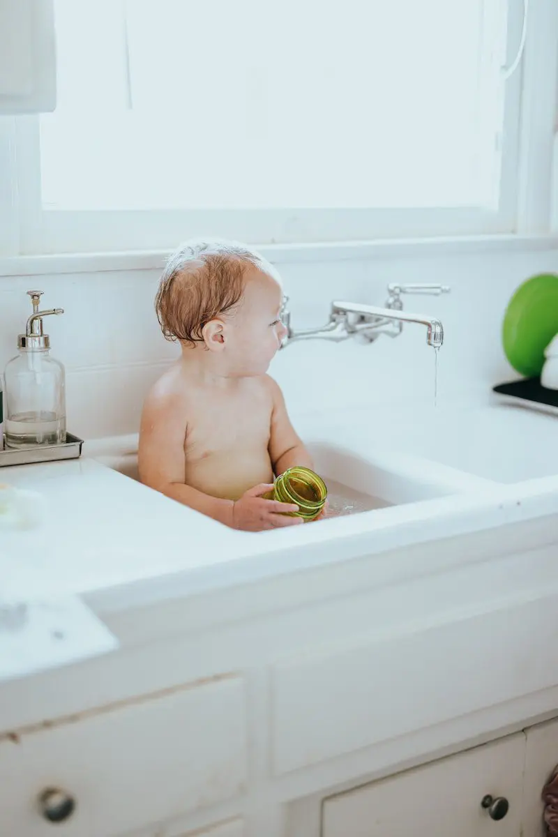 When bathing your child, ensure the tub is free of harsh soaps or cleanser residue. When you check the water temperature, check the temperature with your whole arm. Checking with your fingertips can be deceiving since your hands’ nerve endings are generally not as sensitive. Therefore, what feels warm to your hands may be too hot for your baby’s skin. If you are still unsure about the temperature of the water, you can purchase a baby bath thermometer for a reasonable price. Lastly, when you bathe with your baby, make sure that you get out of the tub and on dry stable ground before you pick your baby up. A slip-and-fall accident while holding your baby could be tragic.