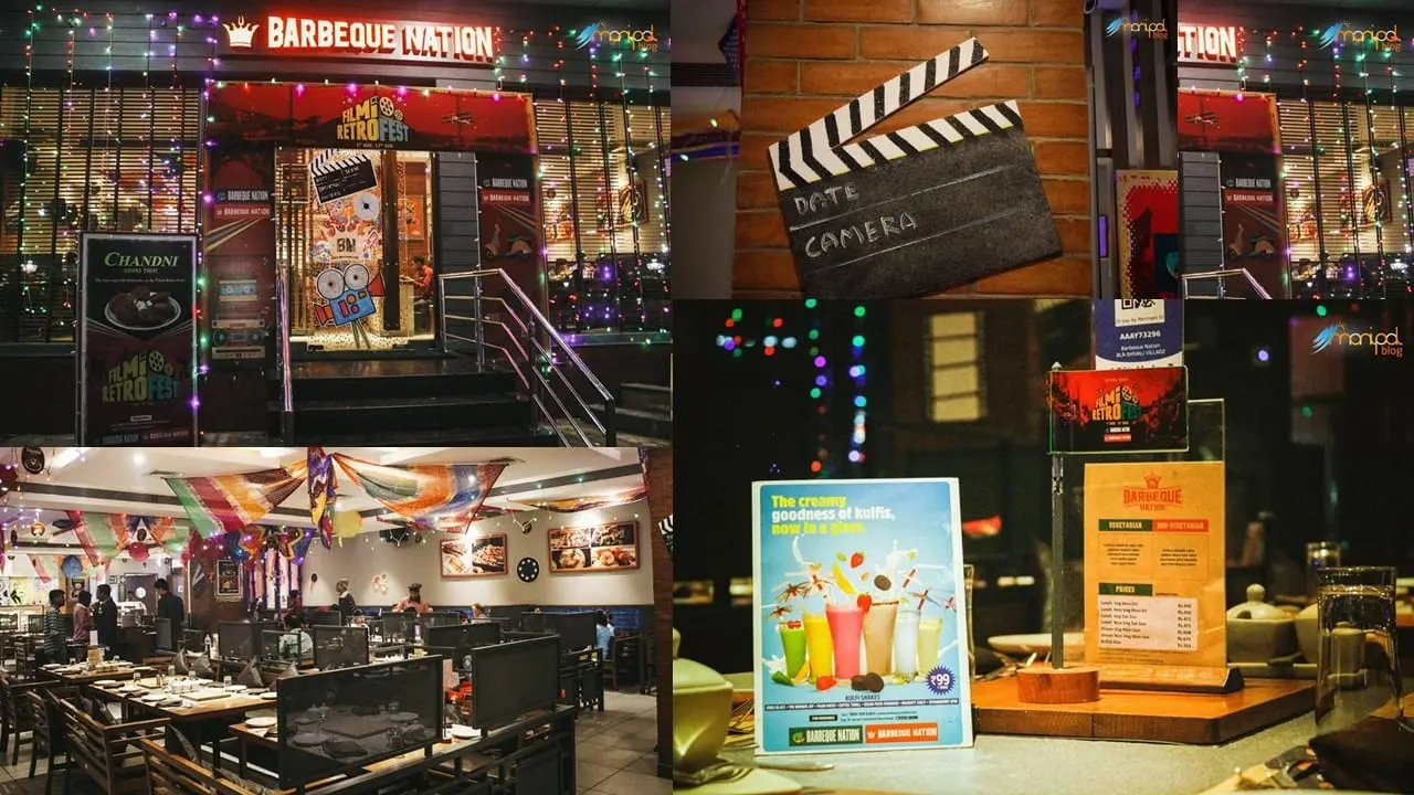 Barbeque Nation is celebrating the monsoon season by going retro, filmy style across its outlets in Thrissur, Calicut, Tirupur, Salem, Erode, Trichy, Madurai, Puducherry, Vellore, Hubli, Mangalore, Manipal & Mysore. ! Our team at ManipalBlog decided to check out what the fuss was all about and discovered some wonderful decor with awesome ambience and some amazing food on the menu! Barbeque Nation has always provided some mouth watering dishes in its unique DIY style and this time it was no different! The unique Filmi Retro Fest, where you can combine your love of live, on the table grill dining, with your love for retro Bollywood movies is simply delightful!