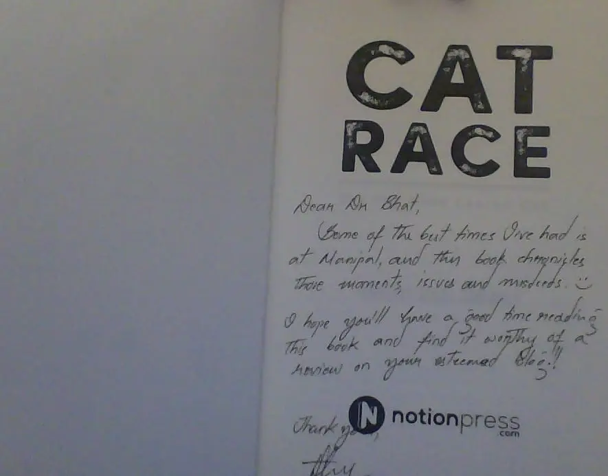Review Synopsis: CAT Race is a delightful and breezy read on the situations that a CAT aspirant faces. For a Manipal student, the added bonus is the beautiful memories this book is surely going to evoke in you the moment you open its pages. I, personally loved this story and would cherish the authors personally signed copy.