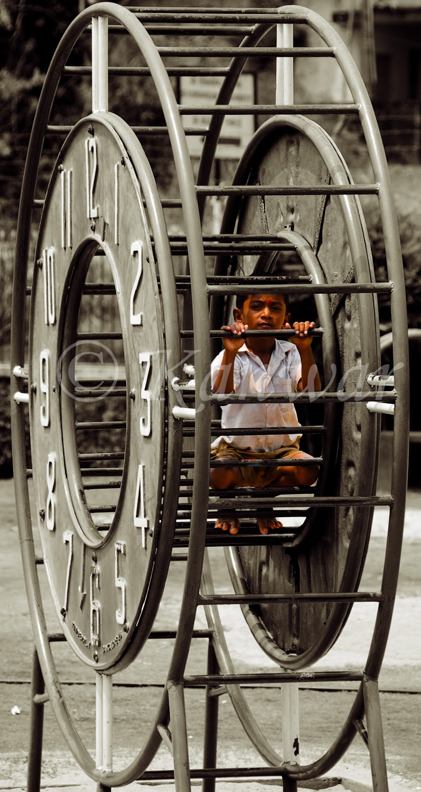 Edit: A line by Dr Vishaal Bhat: “Time runs our life.. rather than us living it the way we want! The emotion on the face of the child.. his hard grip on the swing.. indicate the current predicament of our lives”