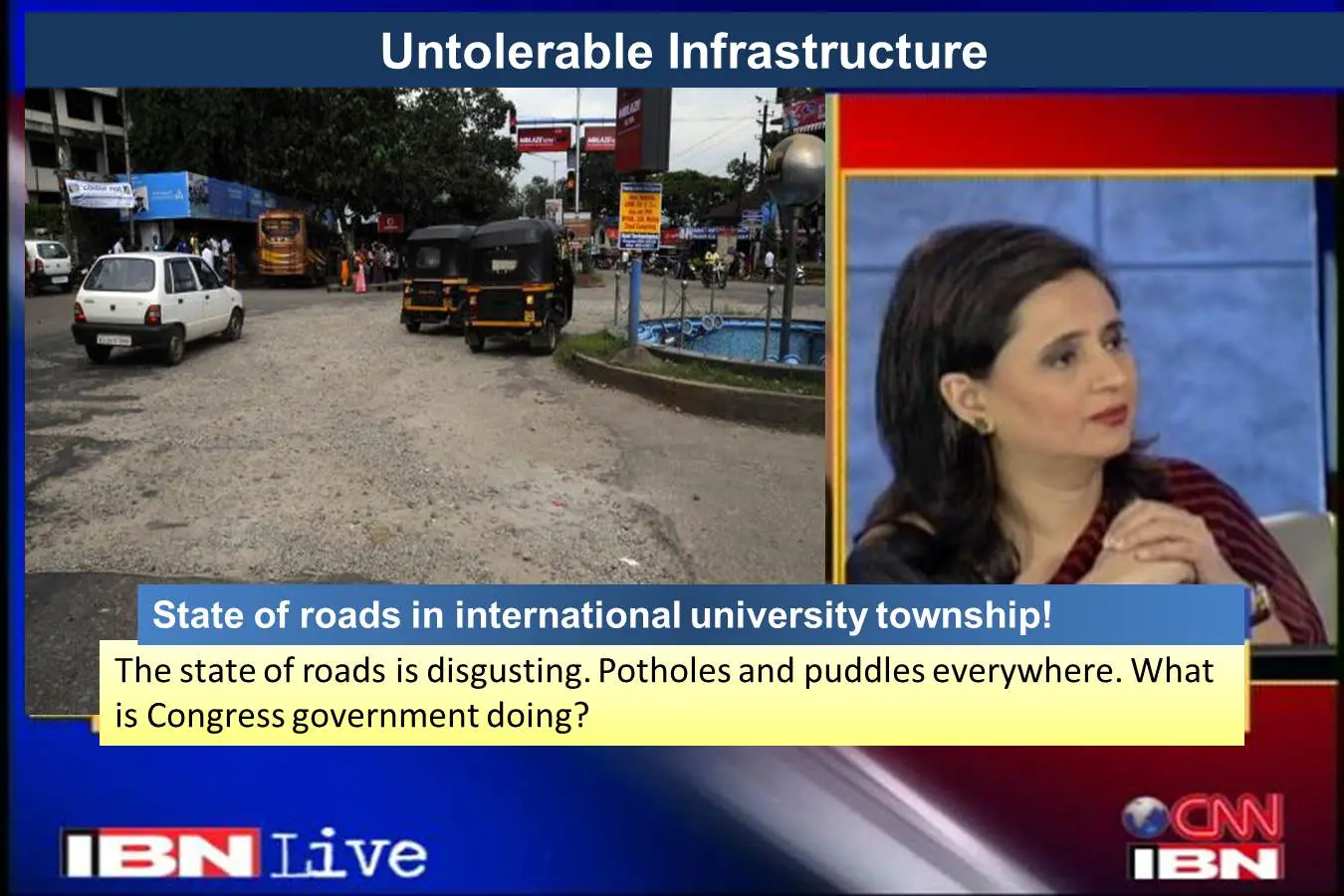 She tweeted, “Tomorrow on FTN. Doesn’t an international university town like Manipal deserve good roads? What is the Government doing? Tweet or Skype.”