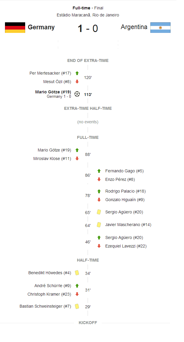 After the semi-final washout win over Brazil, Germany were expected to ‘ace this final’. Argentina had a very difficult tournament, having had close call victories in all their matches leading up to the final, especially in the semis against the Dutch. Germany on the other hand, scored a whopping 17 goals in their journey to the Maracana Matchup. They were the more organized unit, and although they had a nervy 2-2 draw against Ghana, they scarcely stuttered in their campaign.