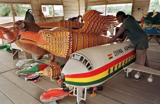 The Ghanaian Ga-Adangbe people are noted for their coffins. They create beautiful coffins that mirror the deceased’s passions. These coffins are pricey, costing around a year’s income. An airplane, a Porsche, a Coca-Cola container, an animal, or even, in questionable taste, a large cigarette packet may be used as the shape for a coffin. Coffin manufacturers are in high demand and are considered prominent artists. Funerals are publicized on large billboards so that no one in the neighborhood is left out.