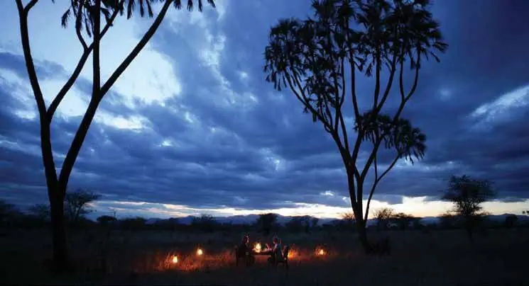 While glistening water often forms part of an outstanding sunset, the view from Loisaba is entirely land-based. But its beauty is in no way diminished. The luxury camp in Nanyuki, Kenya is made up of a lodge, house and cottage each offering mesmerizing views of nightfall. After an action-packed day photographing big cats, elephants, giraffes and zebras, head back to your 4×4 and relax on the roof (right). For something more substantial, try dinner in the bush.