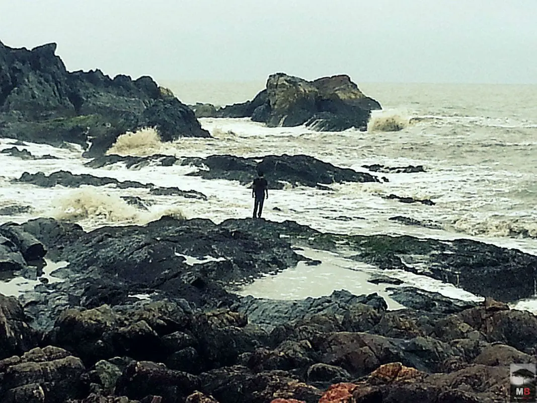 It was a nice, uneventful trip. We reached the beach, parked ourselves on a boulder and took in the view. It will suffice to say, at this point that : I was , err… ahem… not entirely at the peak of my cognitive abilities. In retrospect I can say, I was goaded(a little), influenced by an underlying emotional conflict or I was simply ‘trying to take it all in ’. Whatever the cause maybe, I decided that I could walk across the stretch of rocks to reach the small islet that stretched a little into the sea. [This is where my very first line makes a lot of sense: I do not know how to swim .]
