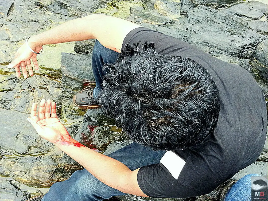 I asked my friend to take a snap of me (the shutterbug never dies, I guess). And I got up and slowly, painfully, and very very cautiously walked back to the actual beach. I went to the toilet of the hotel and when I stripped out of my wet clothes I looked like a leech therapy patient, there was blood on my chest and stomach, from my knees and shins and my hands looked like the chopping board of butchers. No broken bones, no scar leaving injuries and most important of all: I was alive.