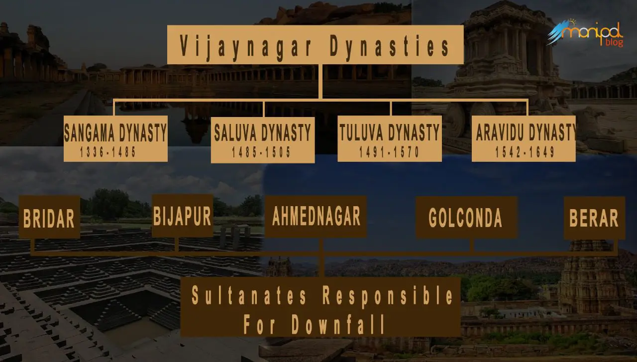 The 4 dynasties that came in were: Sangama dynasty, the Saluva Dynasty, the Tuluva Dynasty, and the Aravidu dynasty.