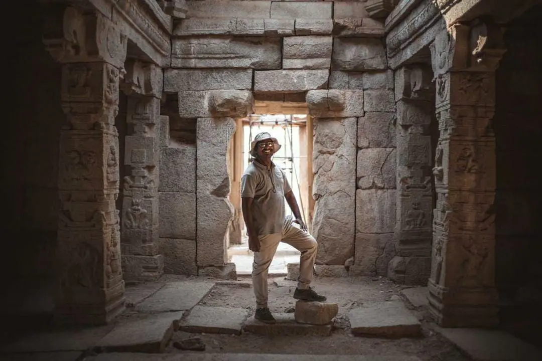 The information was taken from a local historian of Hampi, Mr. Santhosh. He is an engineer by education and a historian by occupation. He was born and brought up here. For him, since he was a child, he remembers cycling up to Hampi and spending his days in the ruins, running around, playing, and exploring the site.