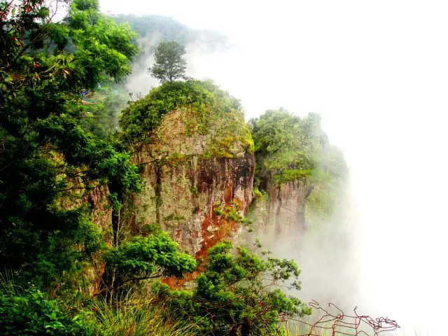 These are called as pillar rocks because you can find three huge stones or boulders, side by side, in the shape of pillars. You feel as if they are God’s courtyards and they are having conversations in whispers. In the picture you can see two pillars clearly and the third one is hiding in trees. Only trained mountaineers climb those rocks.