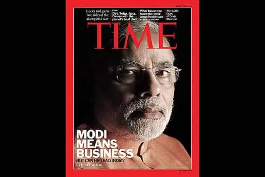 Time magazine, in its March 26 issue, published an article on the Modi, with the heading: “Modi means business”, along with a strap: “But can he lead India?”.