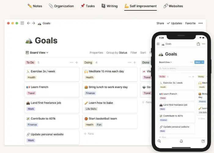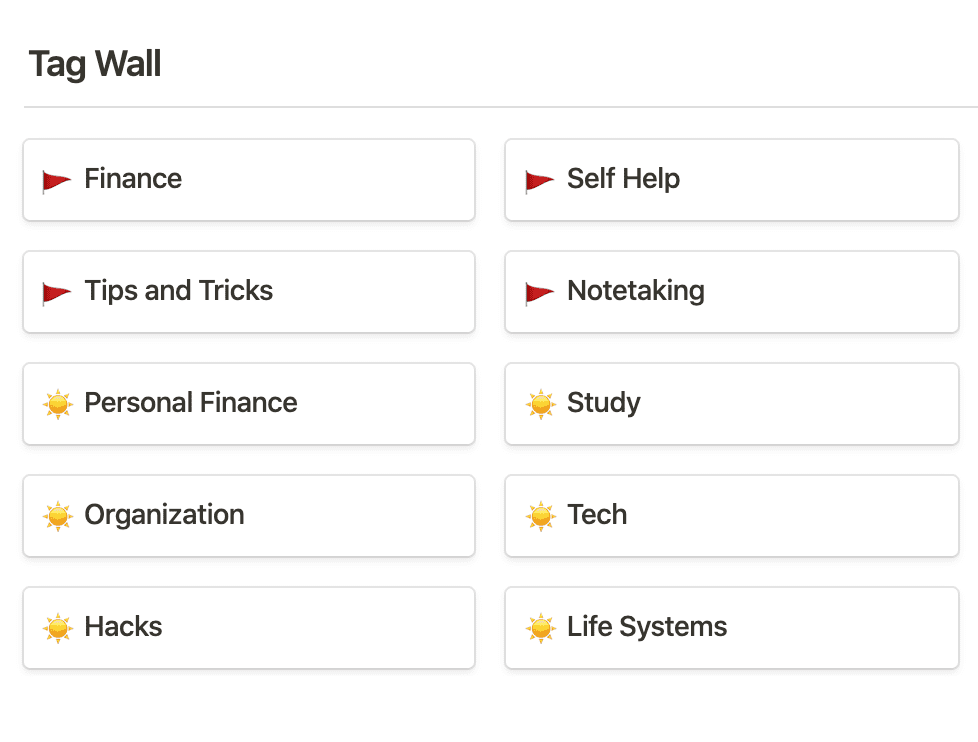 Tags are used to organize your files in an even better and more efficient way. They are colorful highlighted descriptors of content that you can add to your pages. Tags are extremely useful for filtering your pages. Tags aren’t uncommon on most software these days, but Notion does an exceptional job of integrating it.