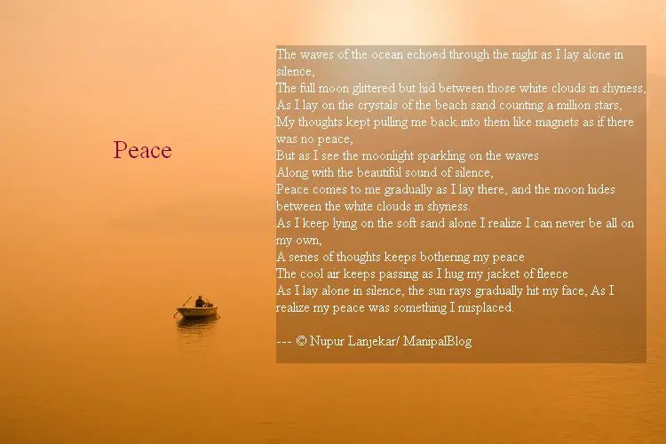 As I lay alone in silence, the sun rays gradually hit my face, As I realize my peace was something I misplaced.