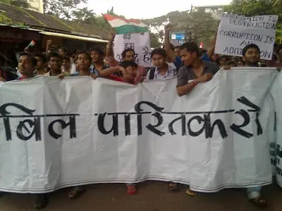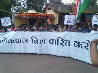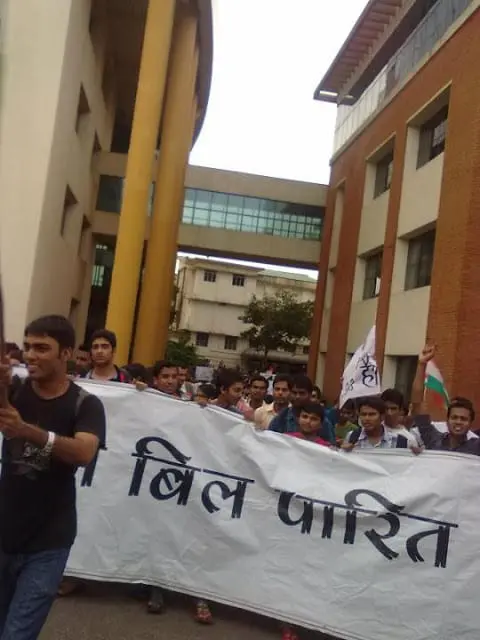 The students were from all the institutions and were shouting slogans protesting against corruption and supporting the Lokpal Bill and social activist Anna Hazare.