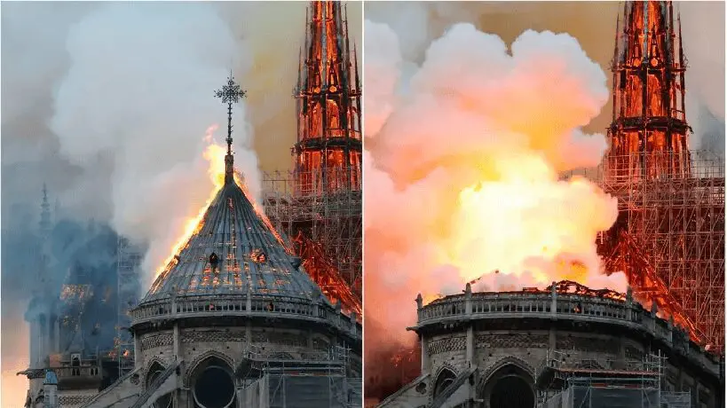 The fire burned for several hours, destroying the 850-year-old cathedral’s iconic spire and roof before firefighters contained the blaze early Tuesday morning.