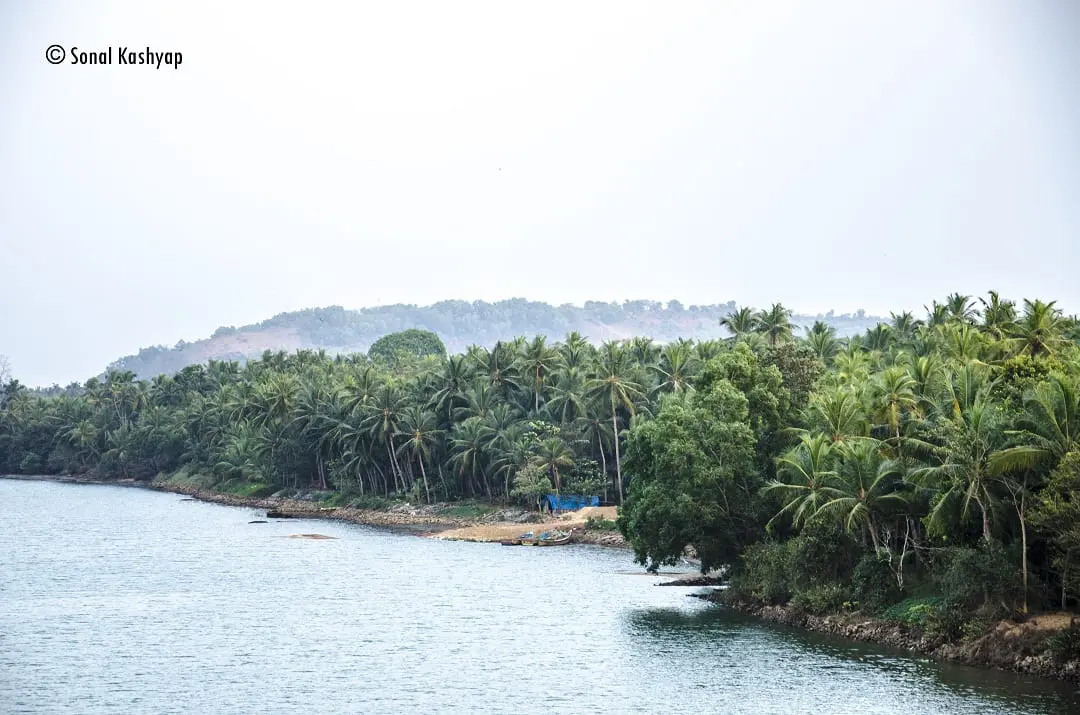 In this picture, I wanted to highlight the coastline along the river and then gently projecting End Point, Manipal as seen from the Railway Bridge, Manipal.
