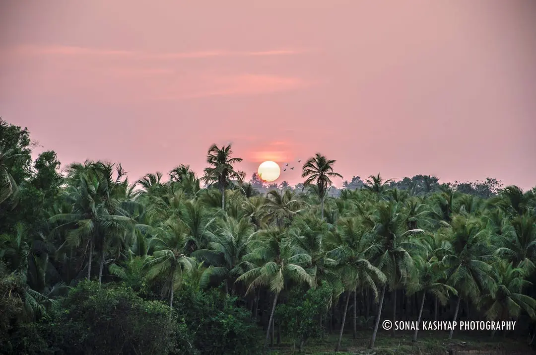 The sunset over the trees and the Swarna river looks magnificent on a clear day from the Railway Bridge Manipal. Pay attention to details, sometimes smallest elements in the photograph are the most emphatic ones. The birds here are one such example. There is a simple trick for getting beautiful blue or sunset colors in the sky. The modern digital sensors absorb the blue color spectrum of light at the slowest rate. That means you need to slow down your shutter speed to let enough of blue spectrum exposed on the sensor (like 1/80 sec). You can stop down the aperture accordingly to avoid overexposed image. Stopping down the aperture will also help in increasing sharpness of the image.