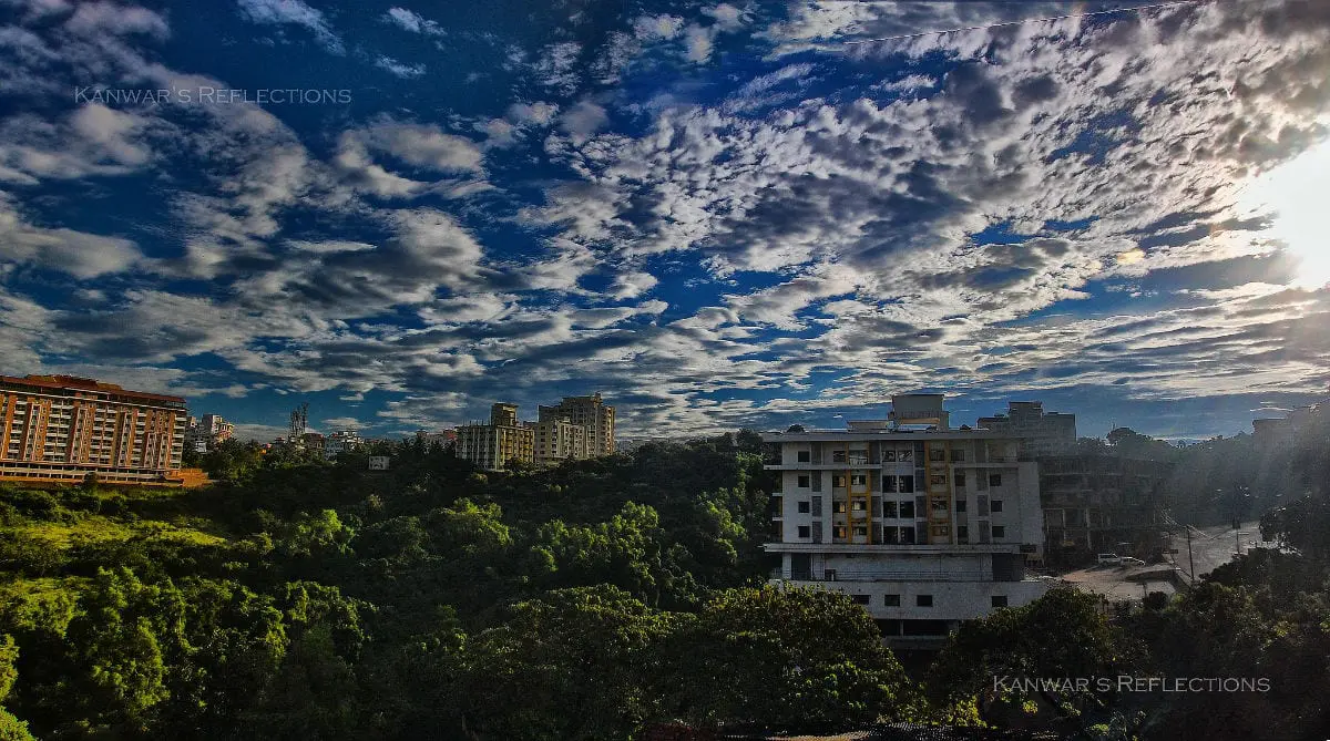 Early Morning Sunshine seeming through the most perfect set of clouds I’ve every seen.