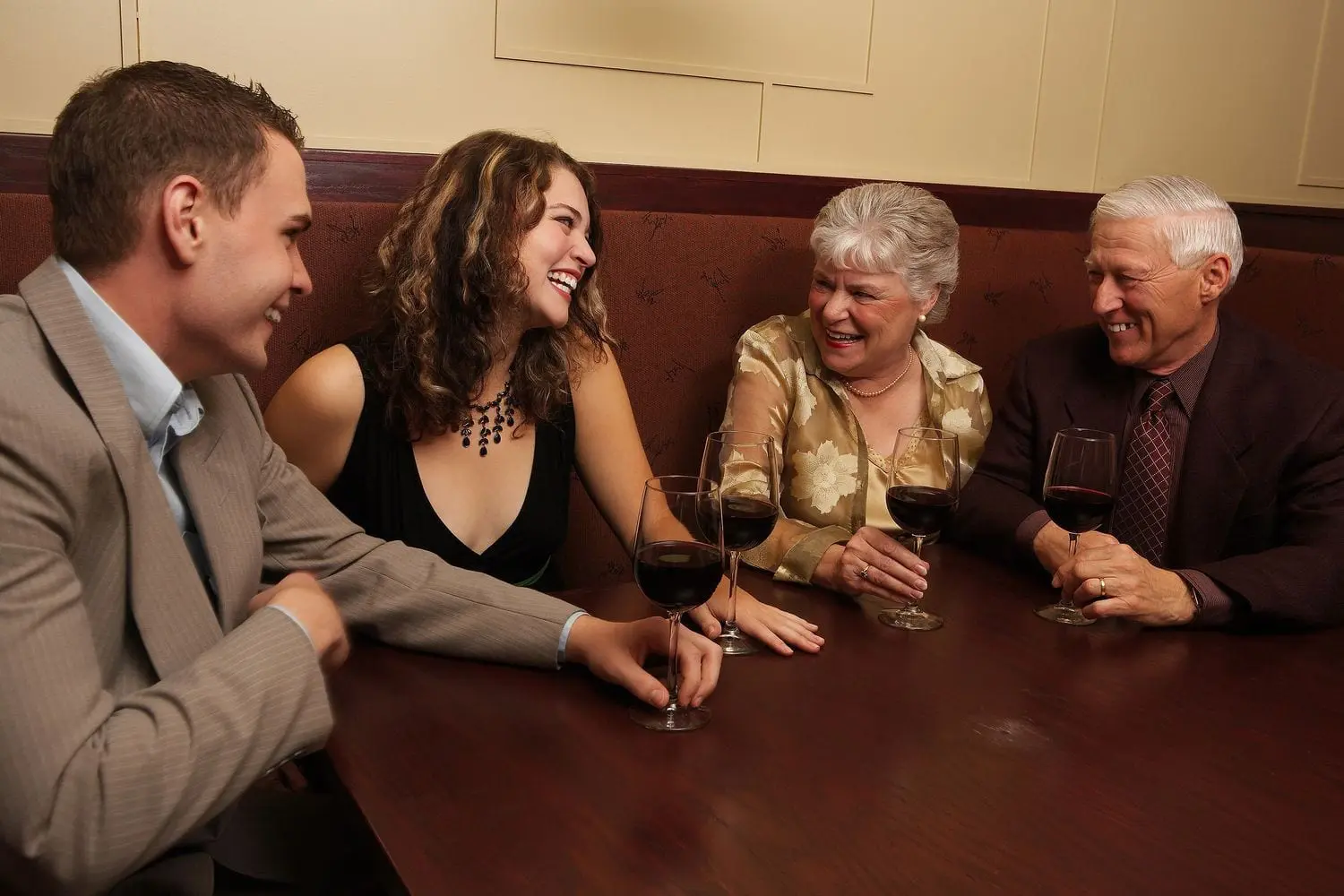 Have some light, neutral conversation, ready. Take a small gift, flowers or wine, if you know for certain they drink it. After the meeting, a hand written thank you note is worth it’s weight in gold. If siblings are present, win over the sisters, and be pleasant but not too familiar with the brothers. Do not practice your flirting skills with the Dad or brothers! Take very small bites during the meal, and do not drink. If offered a glass of wine, accept only if others are as well, but make it last. Absolutely no kissy touchy stuff, please. Ask you guy to help you here. Taking your arm, or hand is fine. Looking like you would rather be alone is not.