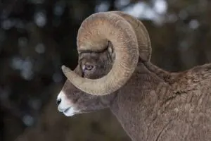 Bighorn sheep, often called mountain sheep, are common in the sub-alpine and alpine around rocky outcrops, cliffs and talus slopes. The curled horns of rams are an impressive site. Rams grow up to 130 kg (287 lbs).