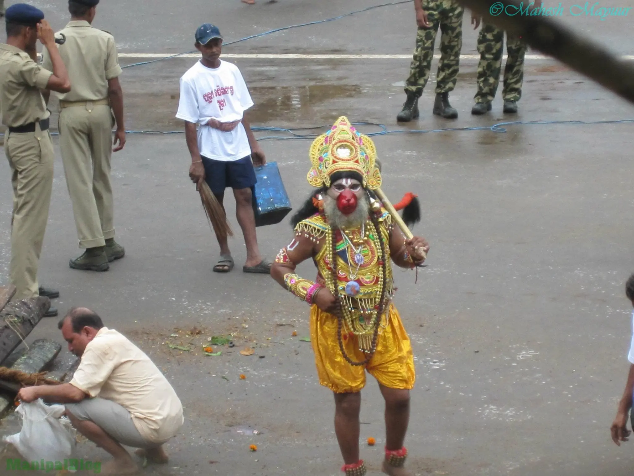 As with other festivities across the country, costumes of various Indian gods are seen during the Puri rath yatra as well. Here we see a devotee dressed as Lord Hanuman!