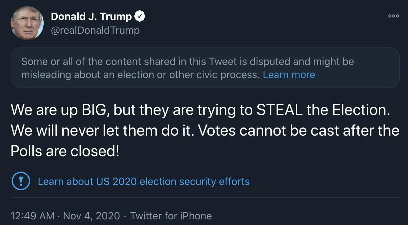 Election day is over but the counting is expected to go on for a few more days as mail-in and absentee ballots are still being counted in the US Presidential Elections. With the race being tight, it was unusual to see POTUS tweet about winning the election and being up “BIG”. Therefore, unsurprisingly, Twitter flagged his tweets for being “misleading.”
