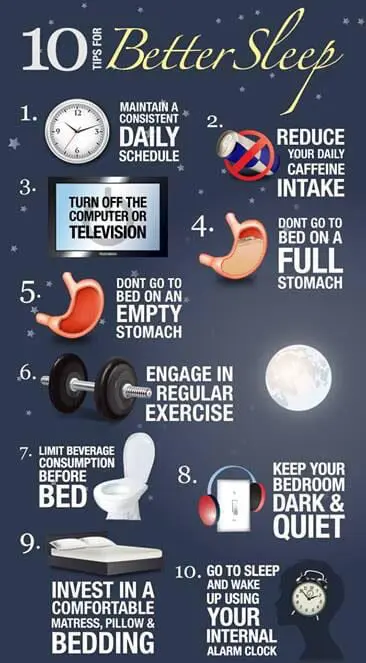 - Maintain a regular bedtime and wake-up schedule. Try to stick to that sleep schedule, even on the weekends. Consistency helps alert your body to when it’s time to go to sleep and wake up.