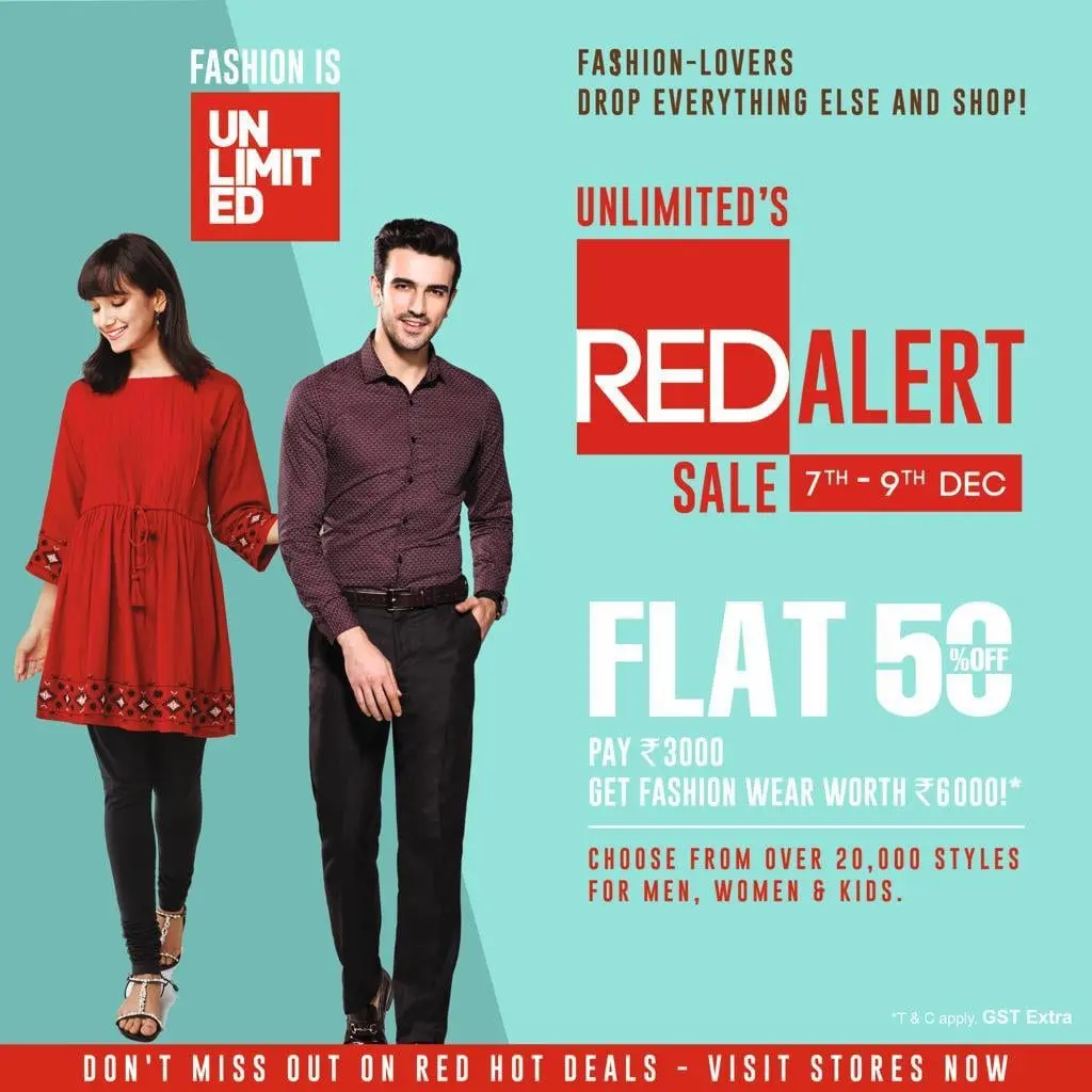 Unlimited’s Red Alert Sale December 7, 2018 ManipalBlog News 0 Red Alert for Unlimited’s Red Alert Sale this December, from 7th to 9th! Flat 50% off on purchases!