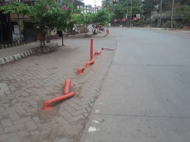 The Mangalore Municipal Corporation has put up markers made up of plastic at various places in the city to aid parking of vehicles. However, as can be seen in this pic, they do not stay erect for long and start drooping. This made for an interesting photograph and title 🙂