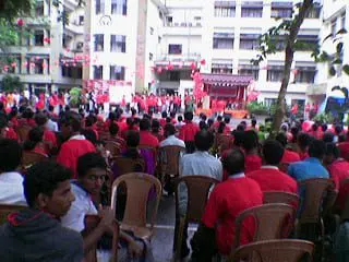 Red stage and red heart shaped balloons all around, made it very pleasant to rinse the exhaustion out of us. Again , prize expectants were made to wait by ‘vote of thanks’ speeches!!