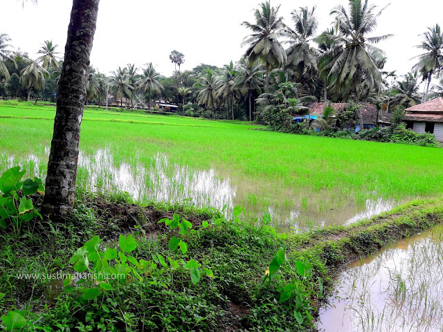For today, we are unfortunately left with fewer greens, more hoardings about “make manipal green” with the “again” missing.  Once you travel away a kilometer or two from the center of the town you will still get to witness what is called the country side. Narrow two-way roads completely designed with potholes; enormous sized, 30 plus years old brick roofed houses; shops  hanging packets of peanuts and coloured candies in the exterior; traditional vendor with his wooden benches lined up with vegetables and fruits. Manipal is named after the lake (mud filled lake). But another water body that envelopes the town and makes the suburbs a heavenly place is the river Swarna. Dotted by coconut trees mostly, banana plantations, paddy fields, serpentine single roads; the landscape is just another master art on nature’s canvas.
