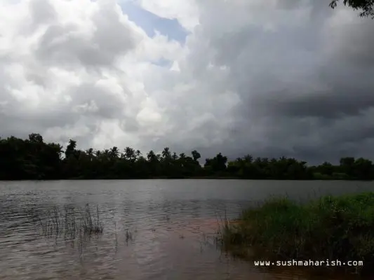Come the monsoons and we realize the river flows too, channeling out in its gushing full, moving like fat beer filled bellies. Even the brawny local coconut trees sway in utter glory and most look quite sexy when then twist and twirl. Tiny forests make pathways filled with little rivulets and streams of muddy water giving life to aquatic fauna. As for the rainy nights, the nightmare is the thunder and the lightening. Many a raining morning sees, some concrete walls of houses tumbled down or dead crows lined up on the roads due to thunder. However, these rains glorified by konkan coastal winds allure you with its seductiveness, and doesn’t withhold you from stepping out for your work knowing you will get drenched to skin.